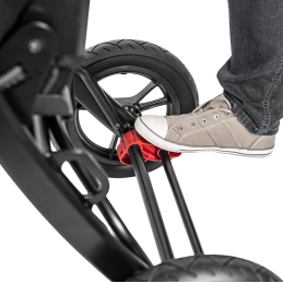 Wózek można złożyć w kilka sekund i jest to tak łatwe jak składanie wózka dziecięcego. Wystarczy nacisnąć dźwignię, bez wysiłku i bez potrzeby użycia narzędzi lub usunięcia akumulatora. Możesz go zabrać, gdzie tylko zechcesz. Dzięki kompaktowym wymiarom po złożeniu wózek zmieści się w bagażniku każdego samochodu czy taksówki.